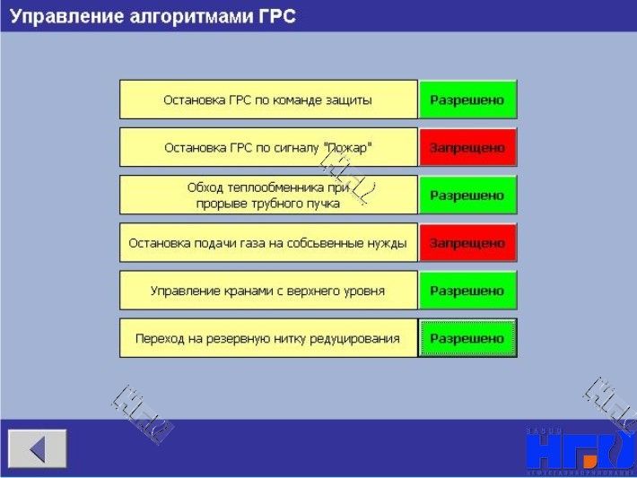 Для безопасности обслуживающего персонала при проведении ремонтно-профилактических работ на ГРС предусмотрено отключение автоматических алгоритмов защиты ГРС и запрет управления исполнительными механизмами с верхнего уровня